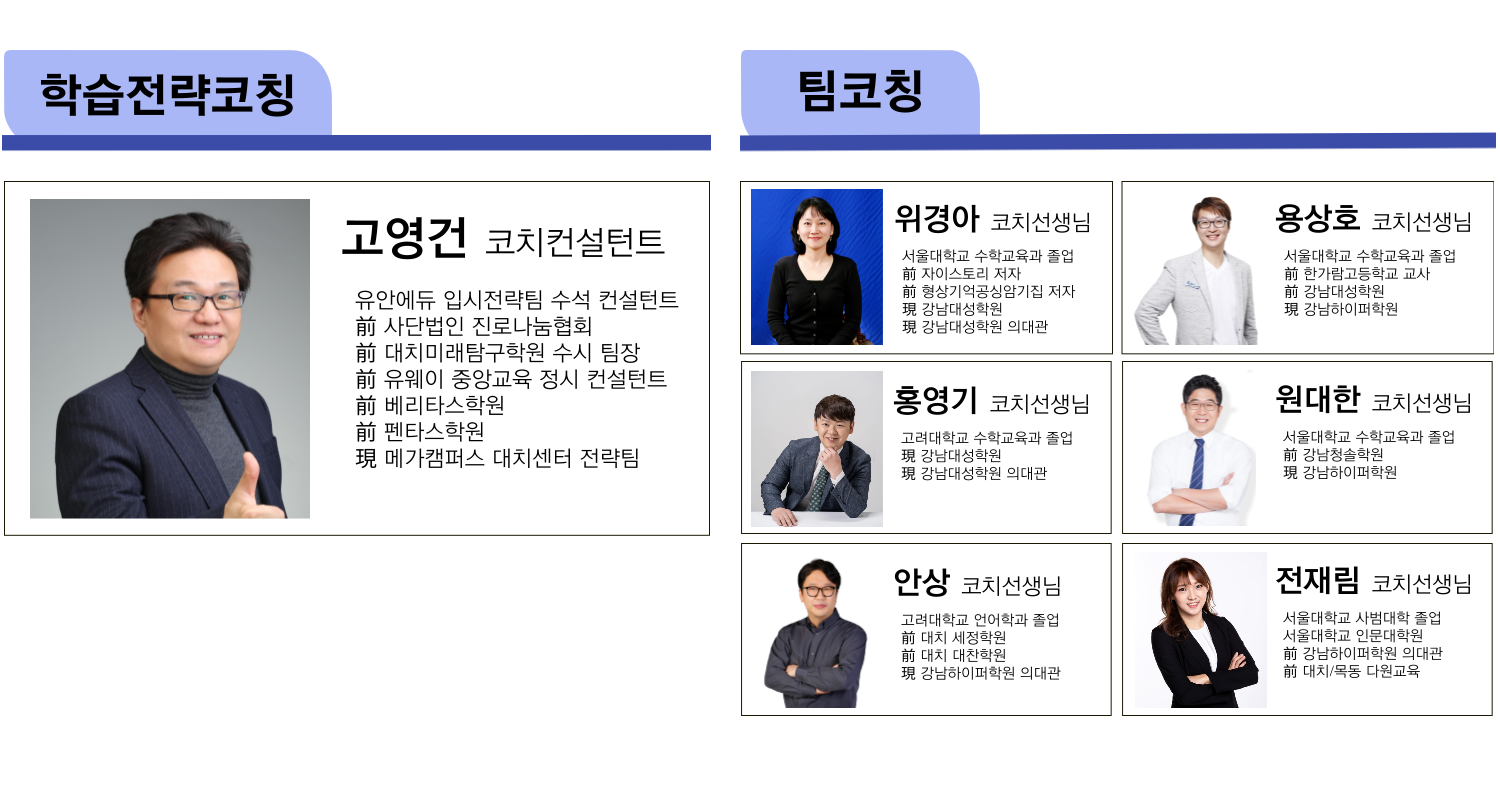 1 : 1 밀착 월간/주간 세부 플랜을 통한 공부의 길을 제시합니다.