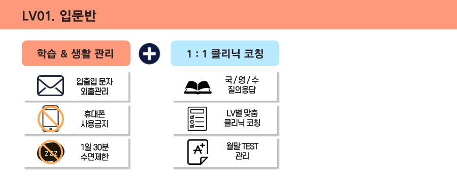 | [ STEP 01 ] 공부 습관 & 생활 관리 코칭 | |||