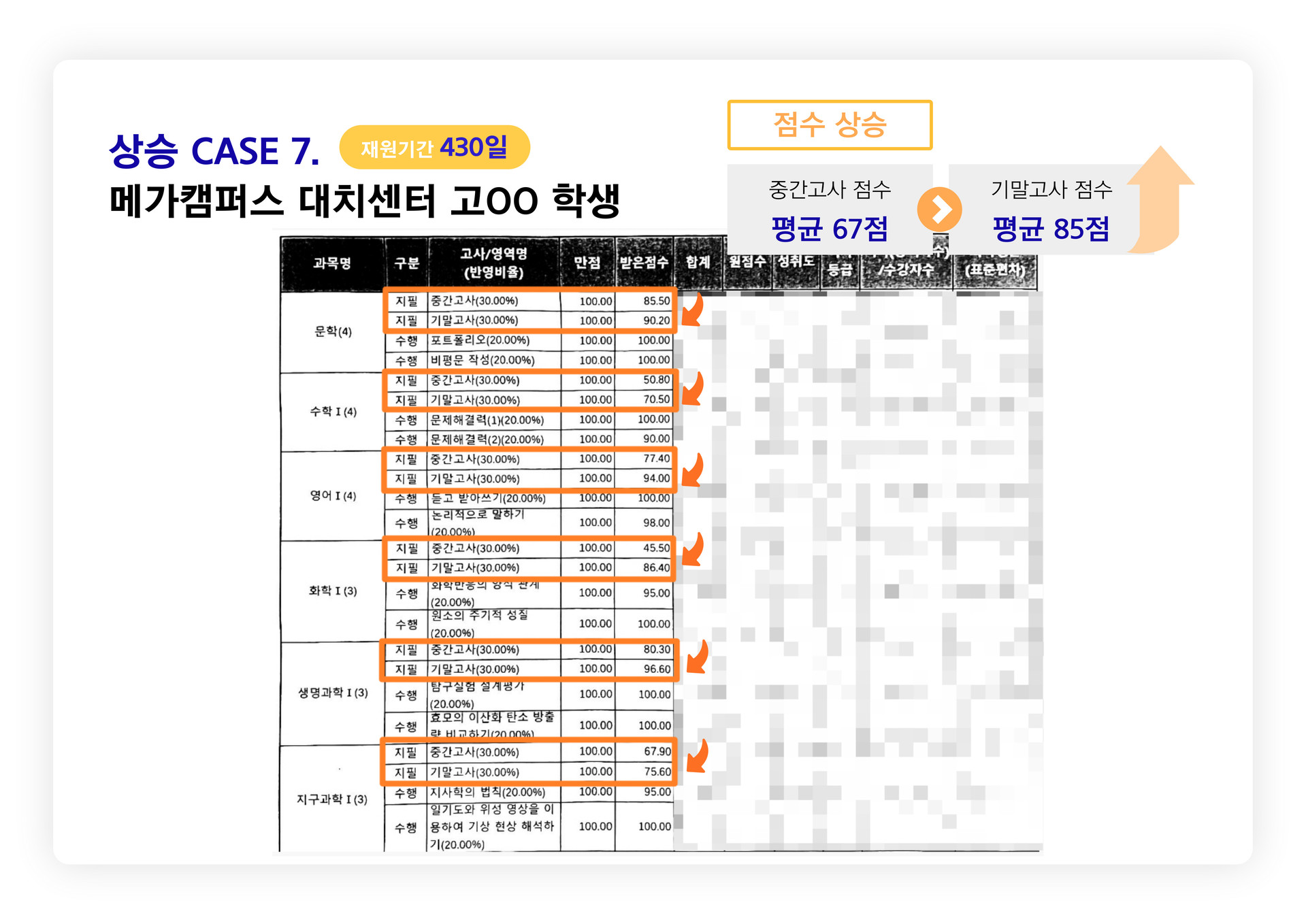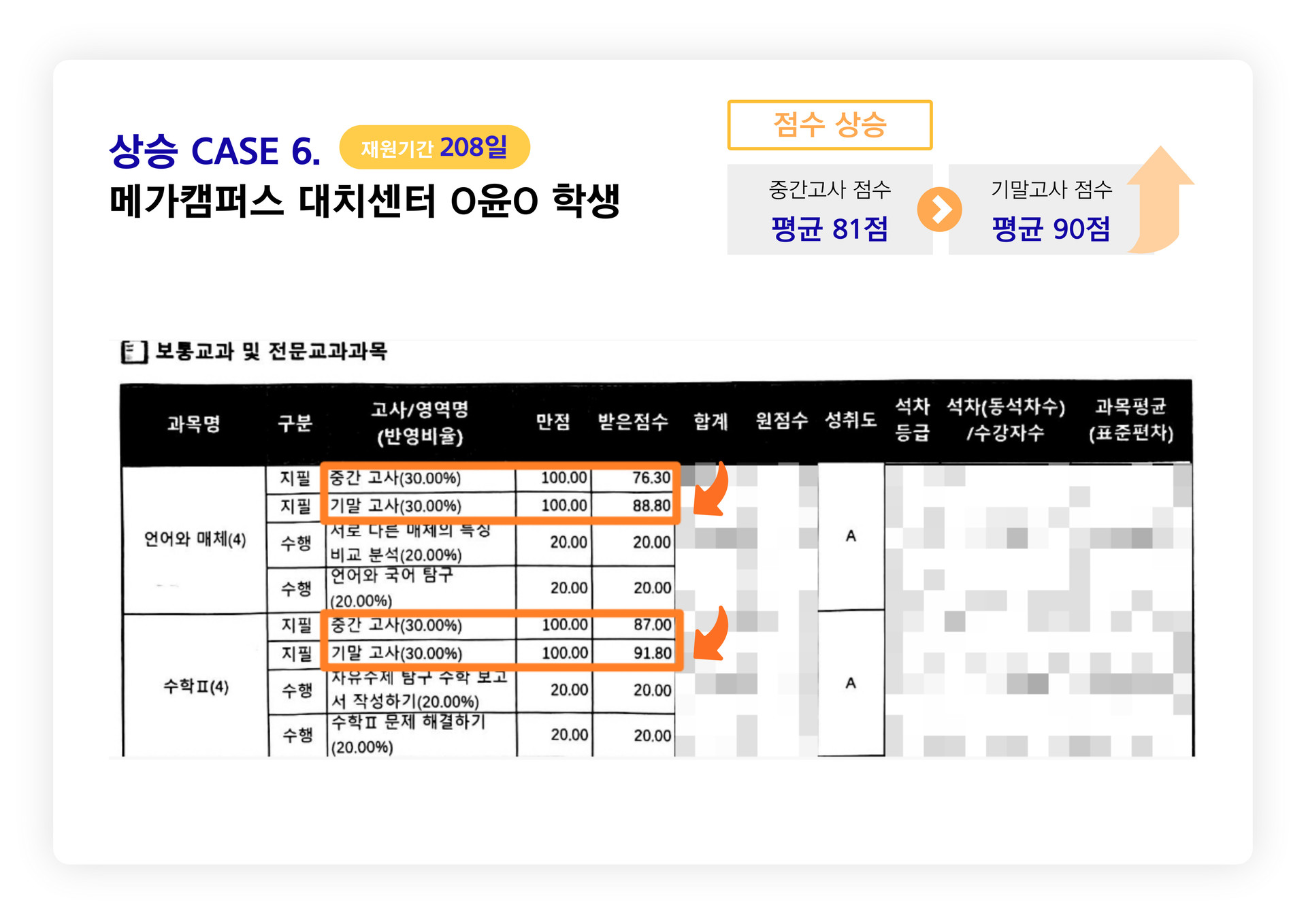 메가캠퍼스 성적 상승 사례