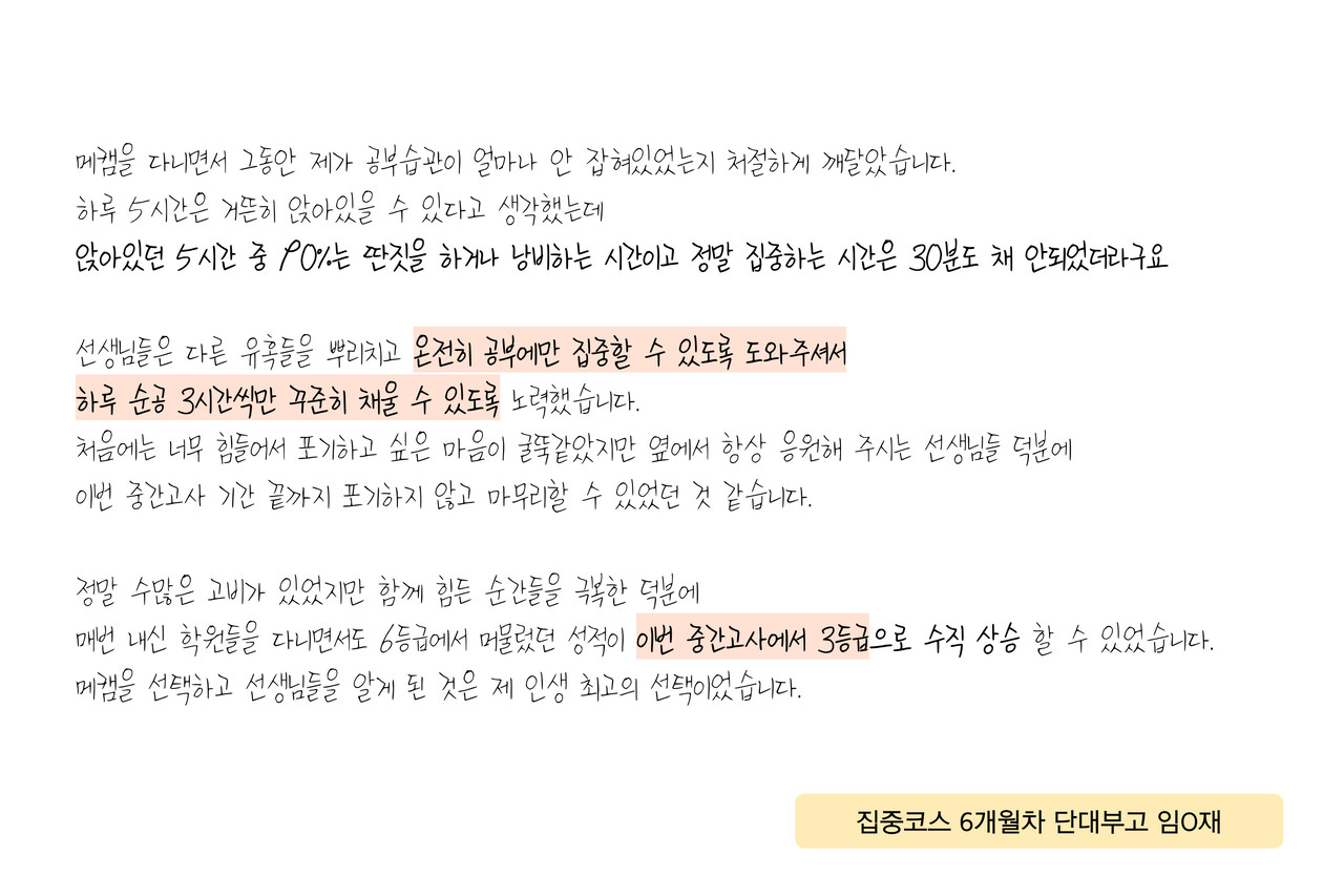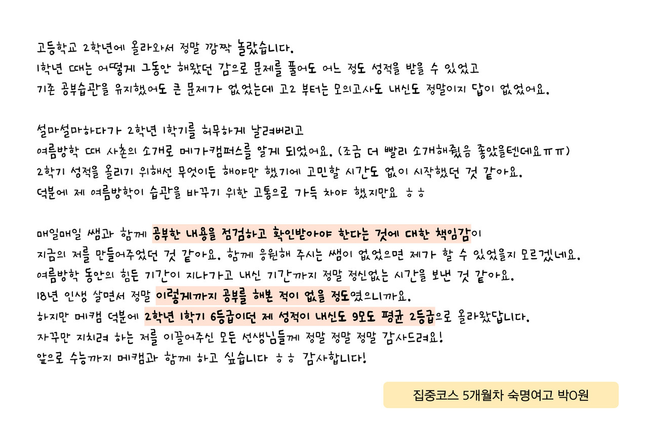 성적이 오를 수밖에 없는 공부의 양과 질을 추구합니다.